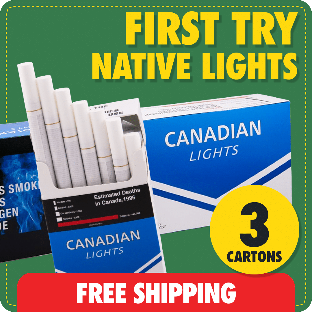 New to native smokes but prefer a lighter draw? The Trying Native Lights bundle lets you try our best-selling low-nicotine option — Canadian Lights (Canadian Blue) — with free shipping, even under the usual $100 threshold.
